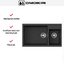 Модель выглядит строго и собранно: прямоугольная форма, продуманная компоновка с двумя разноразмерными чашами и поверхность черного цвета. Размеры 86×50 см визуально выстраивают рабочую зону, а ровные грани придают изделию цельный вид.