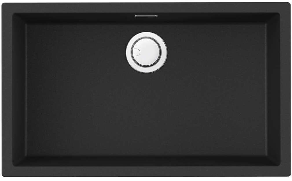 Прямоугольная кухонная мойка графитового цвета выглядит сдержанно и функционально. Четкие линии, прямые углы и ровные кромки формируют аккуратный контур рабочей зоны. Универсальный темный оттенок органично сочетается со столешницами любого тона.