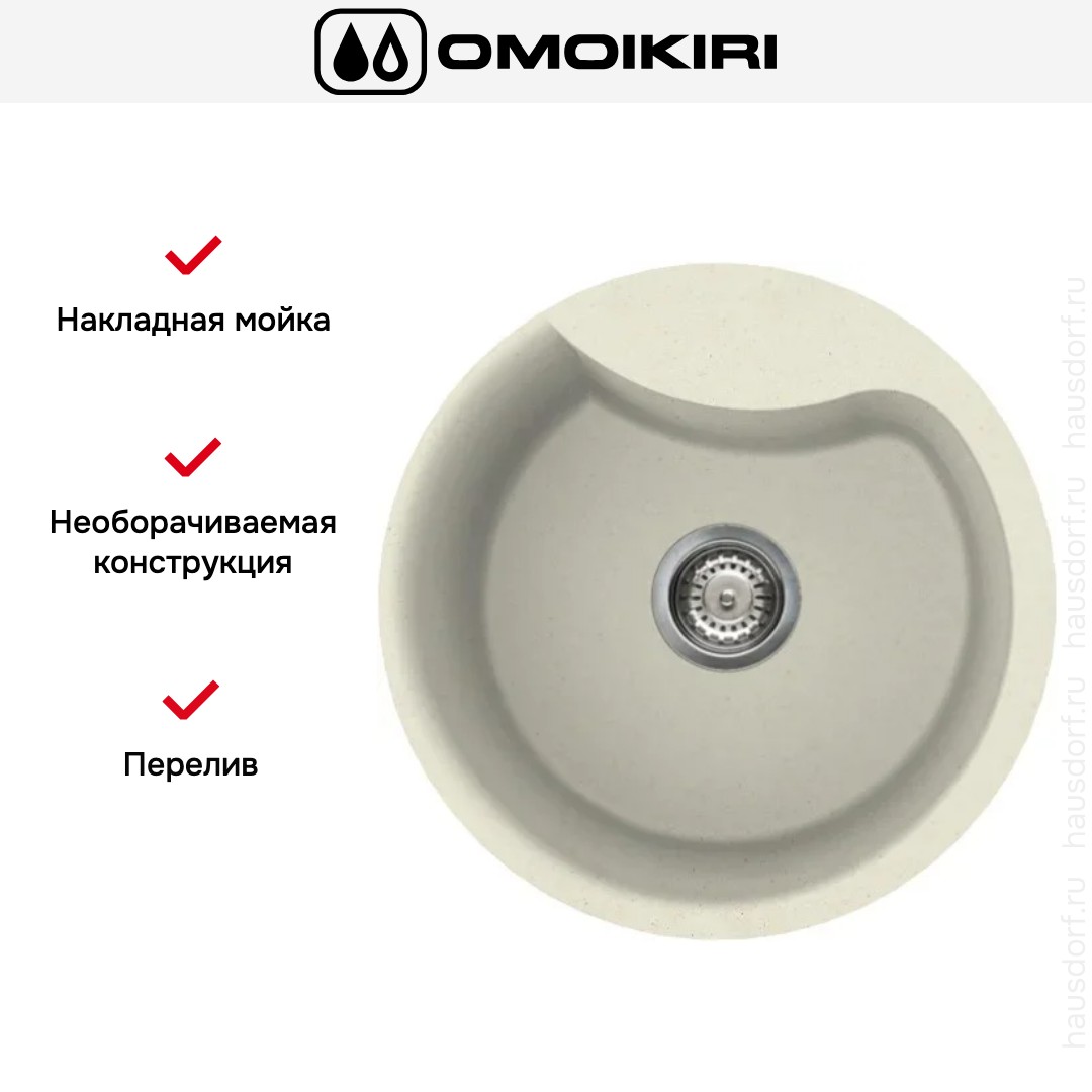 Мойка Omoikiri Yasugata 48R BE — аккуратная накладная модель круглой формы в нежном ванильном оттенке, которая органично вписывается в самые разные варианты обстановки. Ее компактные габариты позволяют разместить устройство даже на небольшой столешнице, сохранив эргономику рабочей зоны. Округлый силуэт смягчает интерьер и придает кухне уютный облик, не перегружая визуально пространство.