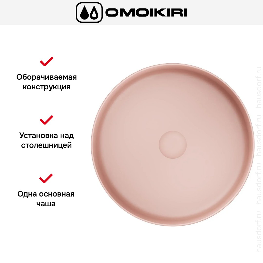 Мойка Omoikiri Mira RO — накладная круглая модель для ванной в нежном розовом оттенке, которая становится ярким акцентом интерьера. Элегантный дизайн сочетается с лаконичными формами и аккуратной окантовкой, что делает изделие уместным в современных и классических ванных. Круглая геометрия визуально смягчает пространство и экономит место на столешнице, создавая уютную зону умывания.