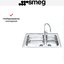 Стальная мойка Smeg с микродекором. Необорачиваемая модель с двумя функциональными чашами. Основная и дополнительная чаши имеют одинаковую глубину 21 см. Модель снабжена бортиком высотой 8 мм, препятствующим попаданию воды на столешницу. Толщина нержавеющей стали составляет 0,7 мм. В комплект входят сифон с возможностью подключения посудомоечной и стиральной машин, корзинчатый вентиль.