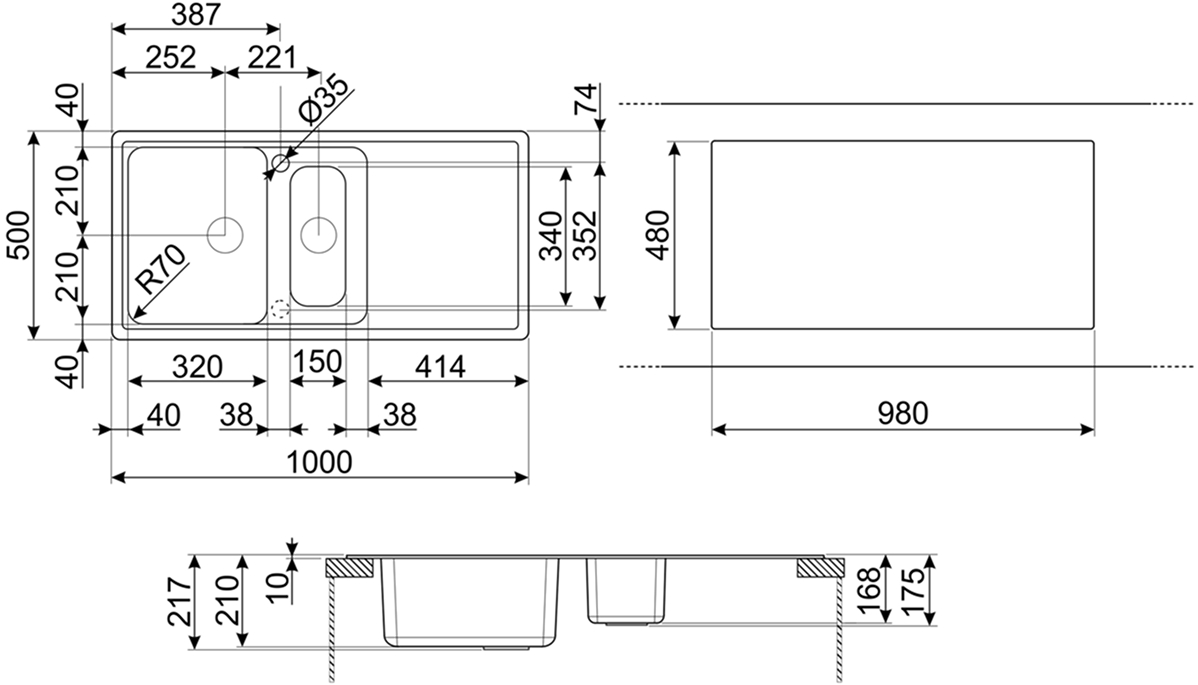 Строгие геометрические линии и сдержанная форма подчёркивают универсальность модели, позволяя ей гармонично вписываться в интерьеры различных стилей — от минимализма и хай-тека до классики с современными акцентами. Благодаря своей длине мойка отлично подходит как для стандартных кухонных линий, так и для островных зон, где требуется повышенная функциональность.
