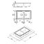 Модель шириной 86 см изготовлена из искусственного гранита, долговечного и гигиеничного современного материала. Мойка может устанавливаться вровень со столешницей. Глубина чаш по вертикали составляет 21 см. Компактный сифон предусматривает возможность подключения посудомоечной машины.