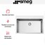 Мойка Smeg VR12S70RS устанавливается вровень со столешницей и имеет прямоугольную форму со скругленными углами. Ее ширина составляет 75 см, а глубина 51 см — такая модель подойдет для просторной кухни. Невысокий бортик предохраняет столешницу от брызг. Глубина чаши 20 см позволит без труда вымыть большие кастрюли или вазы. Перелив предохранит от утечки, даже если кран не будет закрыт вовремя. Мойка Смег VR12S70RS изготовлена из высококачественной нержавеющей стали AISI304 с матовой поверхностью.