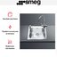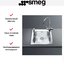 Представленная мойка от европейской компании Smeg произведена из матовой нержавеющей стали толщиной 0.7 мм. Мойка имеет распространенную прямоугольную форму и оснащена одной вместительной чашей для мытья посуды и продуктов. Монтаж осуществляется необорачиваемым способом, с бортиком высотой 8мм. Поставляемый в комплекте сифон, позволяет подключать к мойке стиральную или посудомоечную машину.