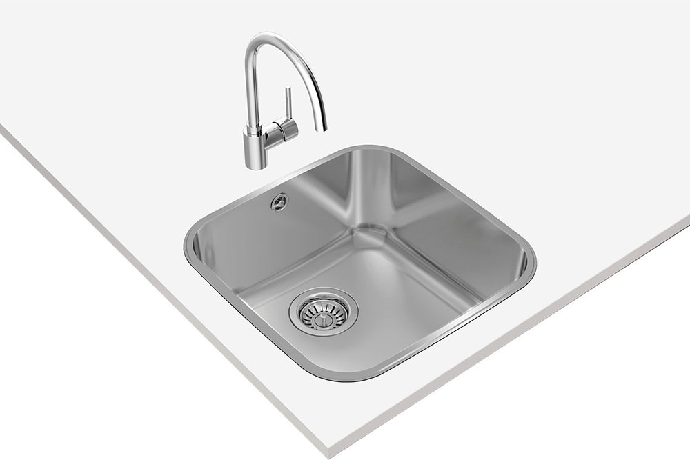 Необорачиваемую мойку можно установить только в одном положении — поэтому при наличии крыла необходимо заранее продумать, как вы хотите ее разместить. Модель имеет одно отверстие для смесителя, может быть разной формы — круглой, квадратной, прямоугольной и нестандартной. Изготавливаются из разных материалов.
