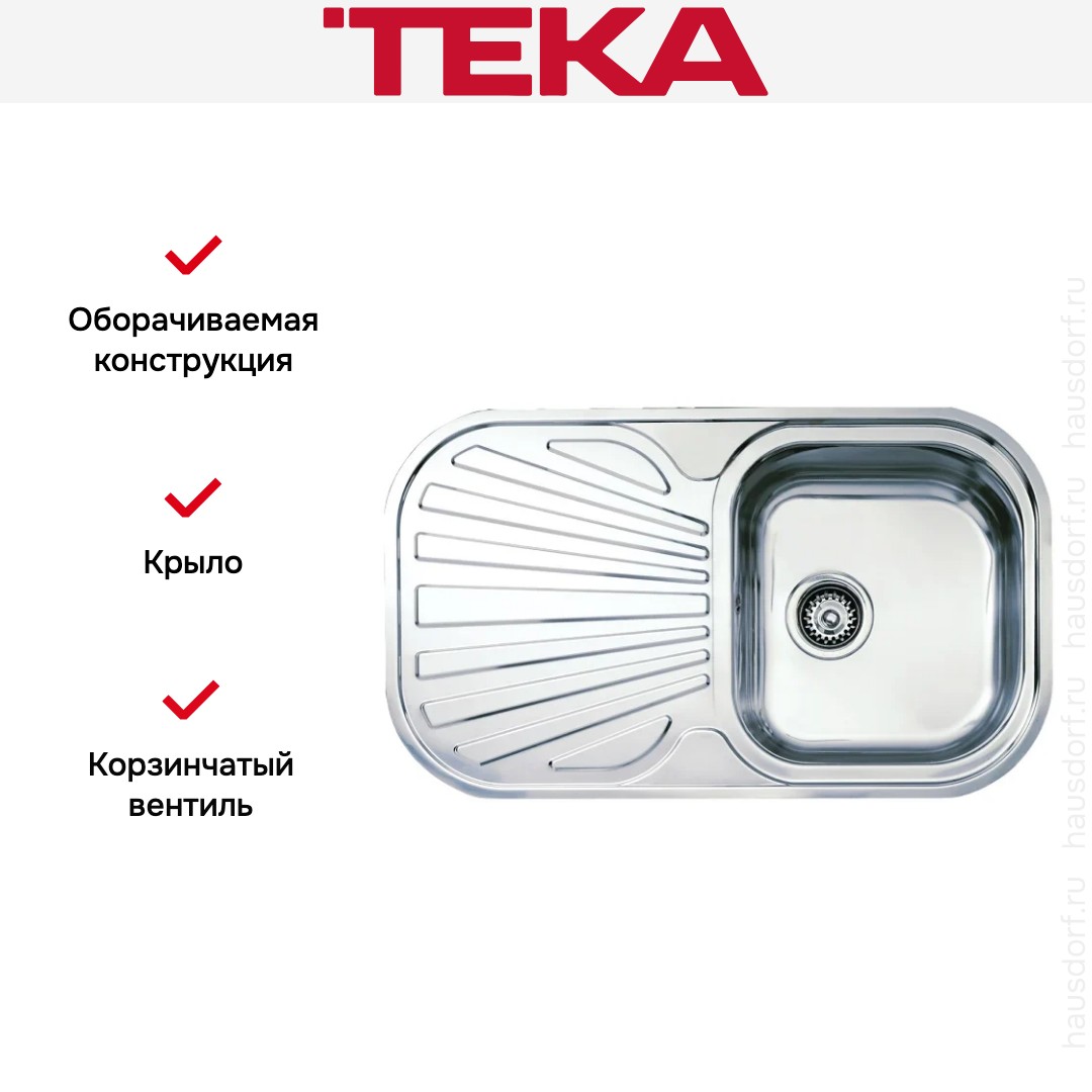 Накладная мойка Teka — отличный выбор для тех, кто хочет создать гармоничное пространство с удобной сантехникой. простой в установке. Преимущество такой конструкции: легко подобрать практически к любой кухне и не придется демонтировать вместе с тумбой при ремонте или перестановке остальной мебели. Данная модель имеет стандартную форму, поэтому подходит большинству пользователей. Устанавливается над столешницей: это самый простой способ монтажа, зачастую с ним можно справиться даже без специалистов, главное — правильно рассчитать размеры ниши.