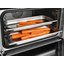 Телескопические направляющие — это металлические полозья, которые выдвигаются из камеры вместе с установленными на них лотками. Они безопасны, так как не требуют помещения рук в камеру, удобны в использовании, а специальные фиксаторы позволяют оставить на них противень с готовым блюдом до остывания.