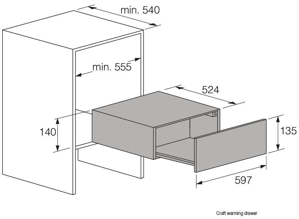 Глубина встраиваемых подогревателей посуды, как и другие их габаритные размеры, определяется типом установки этих домашних приборов. Подогреватель чаще всего размещается в мебельной колонне под другими приборами — преимущественно кофемашинами. Его глубина должна соответствовать глубине стандартной мебельной ниши, размеры которой рассчитываются, исходя из удобства пользователя. Глубина ниши обычно составляет 58 см, так что глубина подогревателя обычно варьируется в пределах от 51 до 57 см. Разница в размерах объясняется наличием вентилятора и другими конструктивными особенностями.