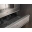 Встраиваемый подогреватель посуды Gaggenau WS461102 — это воплощение немецкого минимализма и строгой функциональности в современном кухонном пространстве. Его лаконичный антрацитовый оттенок гармонично сочетается с другими бытовыми приборами бренда, а благодаря стеклянному дну и внутренней поверхности из нержавеющей стали устройство не только выглядит презентабельно, но и долго сохраняет первоначальный вид даже при интенсивной эксплуатации. Передняя панель плавно выступает из мебельного корпуса на 47 мм, подчеркивая элегантность и современный стиль, а встроенная ручка в нижней части обеспечивает легкий и интуитивно понятный доступ к содержимому. Компактные габариты (14х59х57.1 см) и продуманная конструкция позволяют интегрировать прибор в нишу шириной 56-56.8 см и глубиной 55 см, делая его отличным выбором для современных интерьеров.