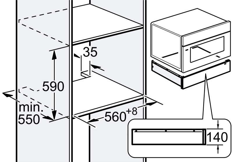 ‐ Возможна установка непосредственно над WSP в нише 59 см без промежуточной полки