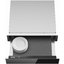 Подогреватель открывается нажатием на фронтальную панель — ящик выезжает на несколько сантиметров, полностью открыть камеру можно, потянув его до упора. Такой способ распространен в современной технике, благодаря этому вы можете собрать комплект из кухонных приборов без выпирающих ручек и создать «бесшовный» интерьер.