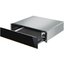 Подогреватель открывается нажатием на фронтальную панель — ящик выезжает на несколько сантиметров, полностью открыть камеру можно, потянув его до упора. Такой способ распространен в современной технике, благодаря этому вы можете собрать комплект из кухонных приборов без выпирающих ручек и создать «бесшовный» интерьер.