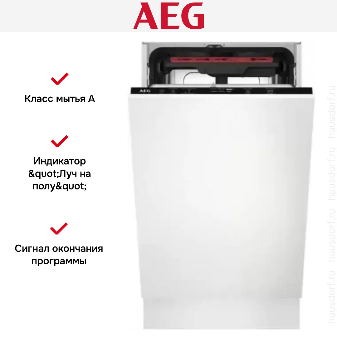 Посудомоечная машина AEG FSM71507P — полновстраиваемая модель светлого оттенка с классом мойки и сушки классом A, классом энергопотребления — А+.