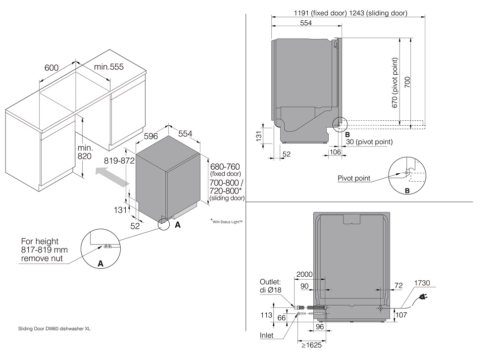 Многие отдельностоящие приборы отличает высота 85 см, однако они оснащаются съемной крышкой, что также позволяет устанавливать их под столешницей. Высоту можно немного изменить при помощи регулируемых ножек — это касается в основном встраиваемых моделей.