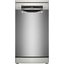 Посудомоечная машина Bosch SPS4HMI49E — это компактное и функциональное устройство, разработанное для тех, кто ценит чистоту, экономию ресурсов и удобство в быту. Благодаря узкому формату с габаритами 84,5×45×60 см, модель идеально подходит для небольших кухонь, не требуя встраивания и занимая минимум полезного пространства. При этом вместимость достигает 10 комплектов посуды, что достаточно для повседневных нужд семьи из нескольких человек. Агрегат оснащён пятью стандартными программами мойки и четырьмя температурными режимами, что позволяет точно подобрать оптимальный цикл в зависимости от характера загрязнений и типа изделий — от хрупкой стеклянной посуды до жирной кухонной утвари. Управление осуществляется с помощью электронной системы с открытой панелью и цифровым дисплеем, на котором наглядно отображается информация о выбранной программе, оставшемся времени и статусе работы. Дополнительное удобство обеспечивает таймер отсрочки запуска с возможностью установки интервала от 1 до 24 часов — это позволяет запускать машину в ночное время или в период действия сниженных тарифов на электроэнергию. Конденсационная сушка гарантирует эффективное удаление влаги без перегрева, сохраняя целостность даже самых деликатных предметов. Низкий уровень шума, продуманная организация внутреннего пространства и надёжная защита от протечек делают эксплуатацию техники безопасной и комфортной. Энергоэффективность и рациональный расход воды подчёркивают заботу производителя об экологии и экономии. Эта модель — отличный выбор для тех, кто ищет сбалансированное сочетание компактности, технологичности и высокого качества очистки.