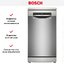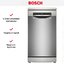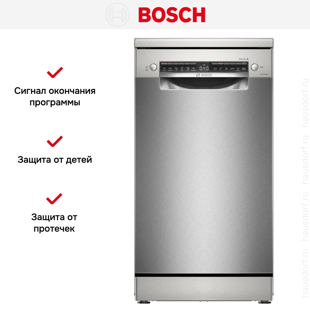 Отдельностоящая модель Бош отлично впишется в кухонный интерьер, главное — правильно выбрать место, чтобы подвести коммуникации. Имеет уменьшенную ширину — благодаря этому поместится даже на очень маленькой кухне. В камеру можно загрузить ограниченное число комплектов: 10 шт. Комплектом считается набор посуды на одного человека, который нужен для полноценного приема пищи: глубокая и плоская тарелки, тарелка для салата, блюдце под чашку, сама чашка, ложка и вилка.