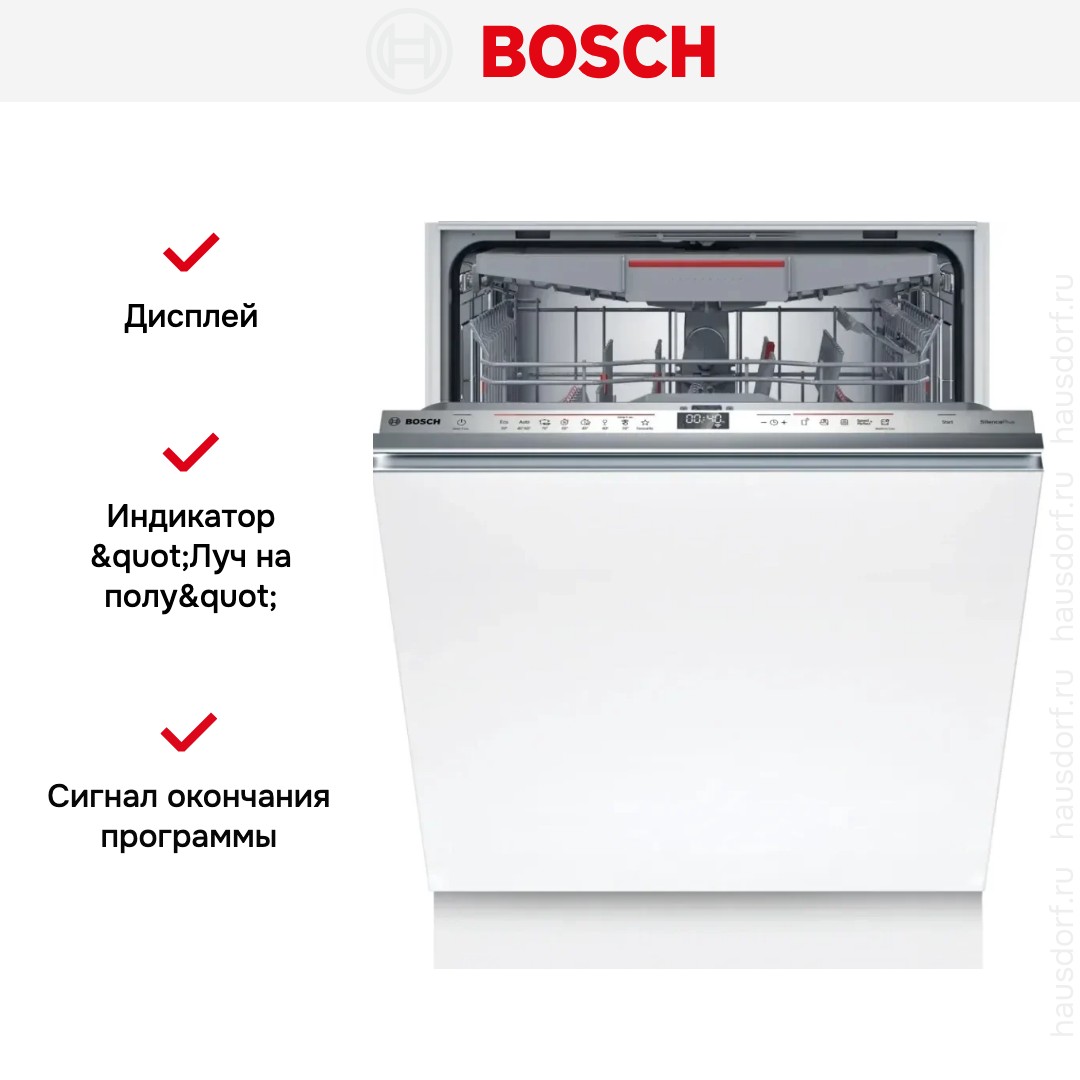 Встраиваемая посудомоечная машина Bosch SMD 6ECX00E — это решение для тех, кто ценит аккуратный интерьер и функциональность техники. Аппарат полностью скрывается за фасадом кухни, сохраняя единый стиль рабочей зоны. Панель управления выполнена из нержавеющей стали и закрывается под дверцей, что делает внешний вид минималистичным и аккуратным. Благодаря возможности использовать ваш фасад машина гармонично впишется в любой кухонный гарнитур.