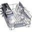 Корзина для столовых приборов достаточно высока, ввиду чего она устанавливается в нижнем коробе, где для нее предусматривается специальное место между разделителями для тарелок. Приборы в корзине могут размещаться как вниз, так и вверх рукоятками — это зависит от количества приборов и требований пользователя. Однако острые предметы — ножи или вилки — необходимо размещать острием вниз для предотвращения травм. Ножи рекомендуется размещать в корзинах с осторожностью, поскольку лезвия из керамики, например, могут затупиться. Чтобы избежать этого, следует использовать фирменные моющие средства и обязательно располагать ножи по отдельности, чтобы они не соприкасались с другими предметами.
