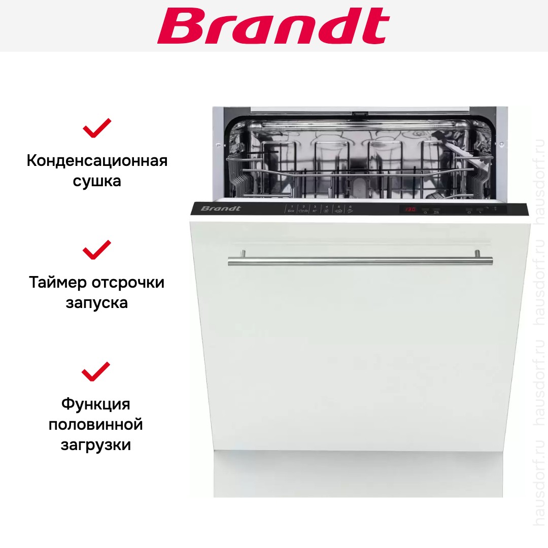 Посудомоечная машина Brandt BKFI1347J — многофункциональная модель для современной кухни. Устройство быстро и эффективно устраняется с любыми загрязнениями, даже с пригоревшим жиром, обеспечивая качественные результаты после каждого цикла. Устройство оборудовано разнообразными режимами, поэтому можно подобрать оптимальный вариант для любых условий. Прибор является полноразмерным — его ширина составляет 60 сантиметров. Такие габариты — идеальный вариант, так как они позволяют с комфортом размещать объемные предметы и посуду нестандартных форм. В посудомоечной машине Брандт BKFI1347J предусмотрено две прочные корзины, которые выдерживают большие нагрузки, не деформируются и не подвержены образованию коррозии. Для столовых приборов есть удобная переносная корзинка, которую удобно загружать и выгружать.