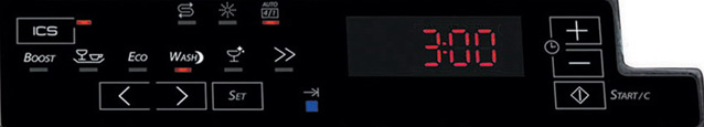 Кроме того, в зависимости от модели на панели управления могут присутствовать кнопки для задания отсрочки старта, для дополнительного полоскания, для запуска быстрой программы, для мойки с использованием комбинированных моющих средств «3 в 1» и для половинной загрузки. В более новых моделях при помощи горячих клавиш «+» и «-» можно регулировать температуру мытья, а также выбирать мойку в одной из корзин при половинной загрузке.
