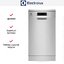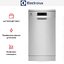 Отдельностоящая модель Электролюкс отлично впишется в кухонный интерьер, главное — правильно выбрать место, чтобы подвести коммуникации. Имеет уменьшенную ширину — благодаря этому поместится даже на очень маленькой кухне. В камеру можно загрузить ограниченное число комплектов. Комплектом считается набор посуды на одного человека, который нужен для полноценного приема пищи: глубокая и плоская тарелки, тарелка для салата, блюдце под чашку, сама чашка, ложка и вилка.