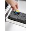 Корзина для столовых приборов достаточно высока, ввиду чего она устанавливается в нижнем коробе, где для нее предусматривается специальное место между разделителями для тарелок. Приборы в корзине могут размещаться как вниз, так и вверх рукоятками — это зависит от количества приборов и требований пользователя. Однако острые предметы — ножи или вилки — необходимо размещать острием вниз для предотвращения травм. Ножи рекомендуется размещать в корзинах с осторожностью, поскольку лезвия из керамики, например, могут затупиться. Чтобы избежать этого, следует использовать фирменные моющие средства и обязательно располагать ножи по отдельности, чтобы они не соприкасались с другими предметами.
