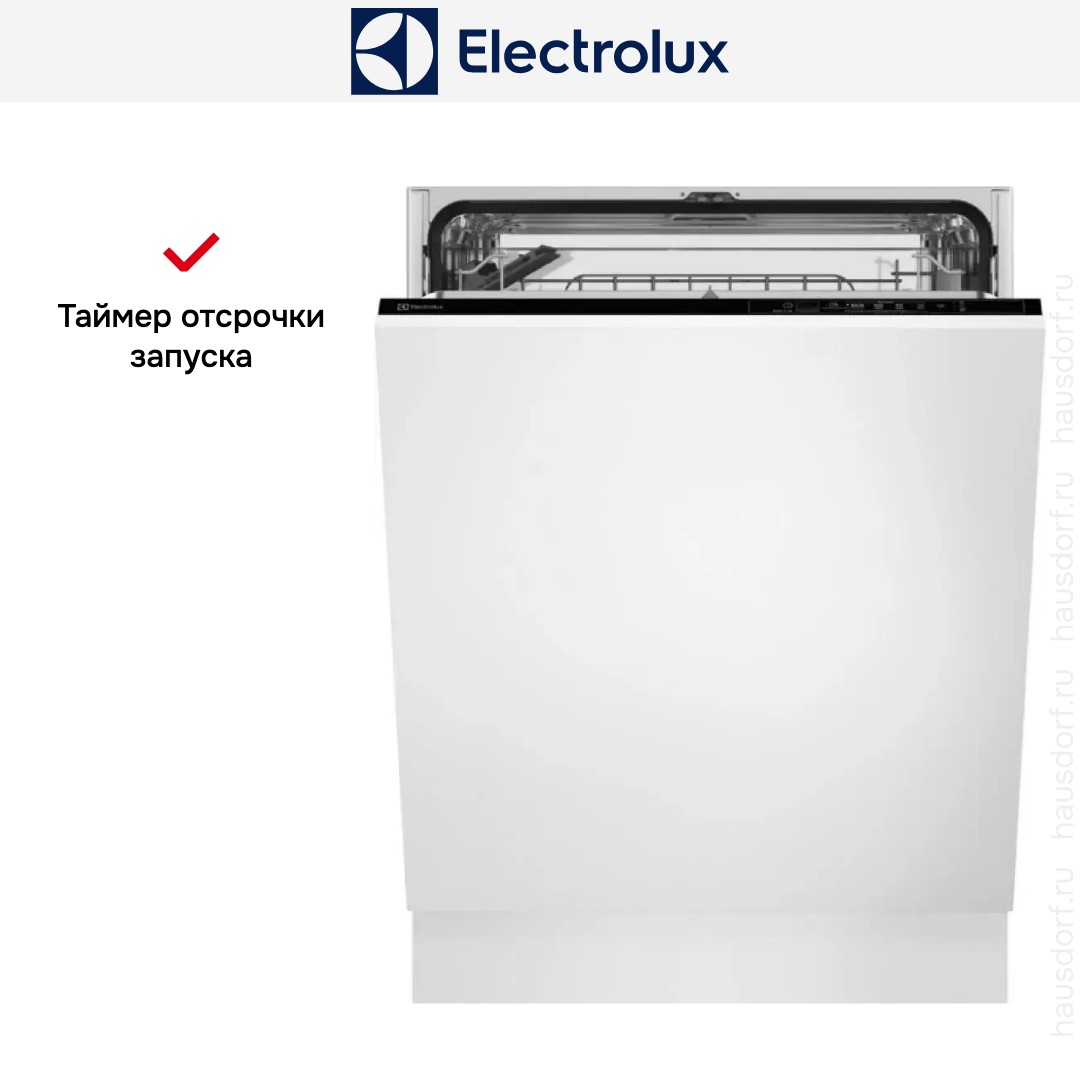 Встраиваемая модель Электролюкс отлично впишется в любой интерьер, главное — правильно выбрать место, чтобы подвести коммуникации. Устанавливается в нишу целиком, полностью закрывается декоративной панелью. Обратите внимание: в комплекте не идет фасад, его необходимо установить самостоятельно. Имеет стандартные размеры, поэтому может не поместиться на очень маленькой кухне. В камеру можно загрузить ограниченное число комплектов: 13 шт. Комплектом считается набор посуды на одного человека, который нужен для полноценного приема пищи: глубокая и плоская тарелки, тарелка для салата, блюдце под чашку, сама чашка, ложка и вилка.