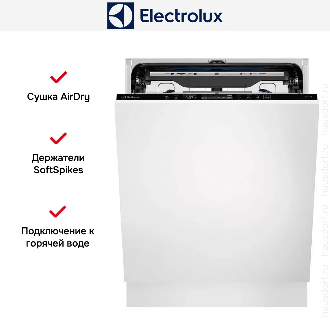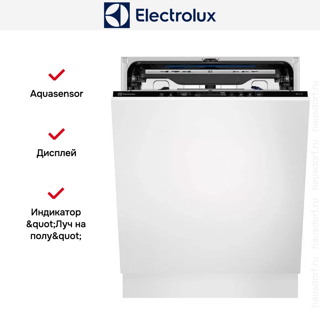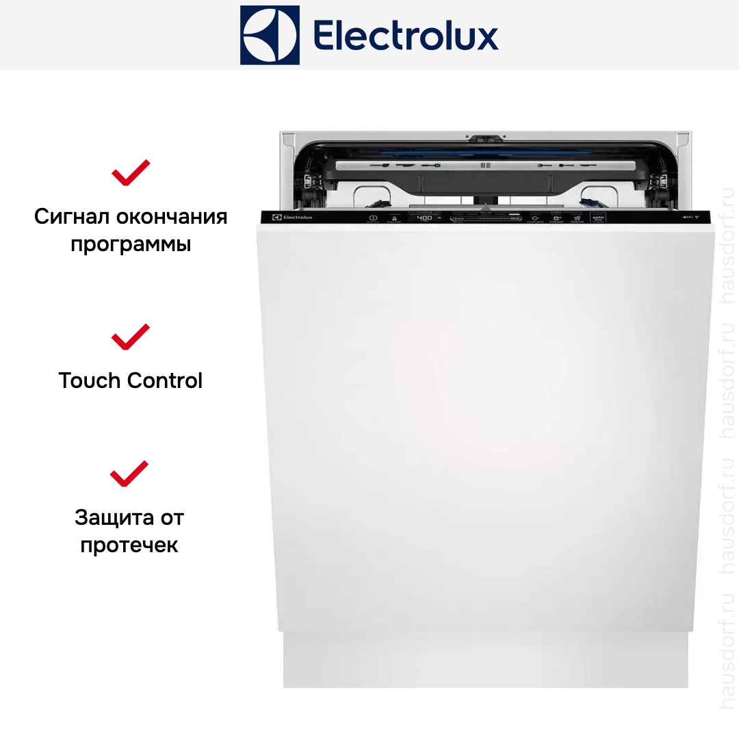 Встраиваемая модель Электролюкс отлично впишется в любой интерьер, главное — правильно выбрать место, чтобы подвести коммуникации. Устанавливается в нишу целиком, полностью закрывается декоративной панелью. Обратите внимание: в комплекте не идет фасад, его необходимо установить самостоятельно. Имеет стандартные размеры, поэтому может не поместиться на очень маленькой кухне. В камеру можно загрузить ограниченное число комплектов: 15 шт. Комплектом считается набор посуды на одного человека, который нужен для полноценного приема пищи: глубокая и плоская тарелки, тарелка для салата, блюдце под чашку, сама чашка, ложка и вилка.