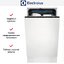 Встраиваемая модель Электролюкс отлично впишется в любой интерьер, главное — правильно выбрать место, чтобы подвести коммуникации. Устанавливается в нишу целиком, полностью закрывается декоративной панелью. Обратите внимание: в комплекте не идет фасад, его необходимо установить самостоятельно. Имеет уменьшенную ширину — благодаря этому поместится даже на очень маленькой кухне. В камеру можно загрузить ограниченное число комплектов. Комплектом считается набор посуды на одного человека, который нужен для полноценного приема пищи: глубокая и плоская тарелки, тарелка для салата, блюдце под чашку, сама чашка, ложка и вилка.
