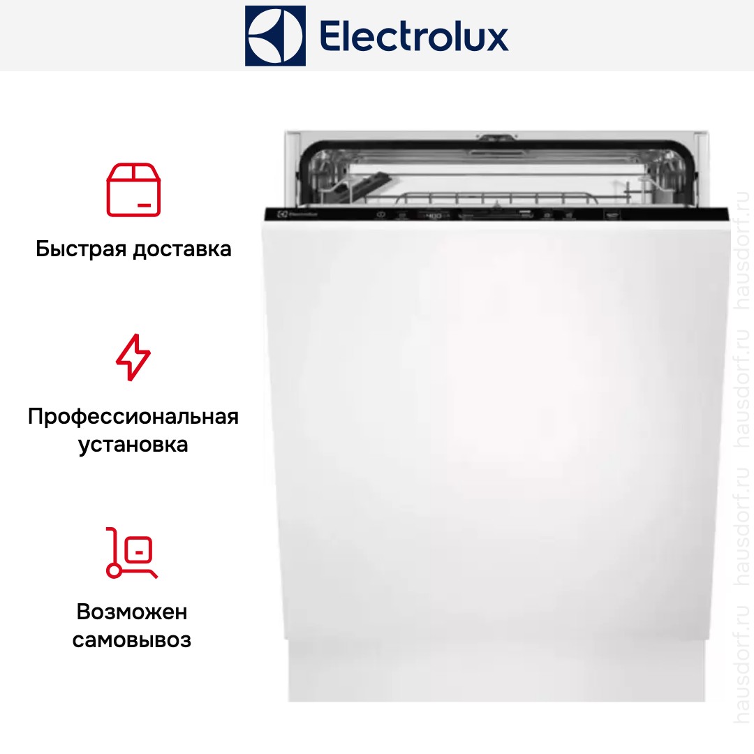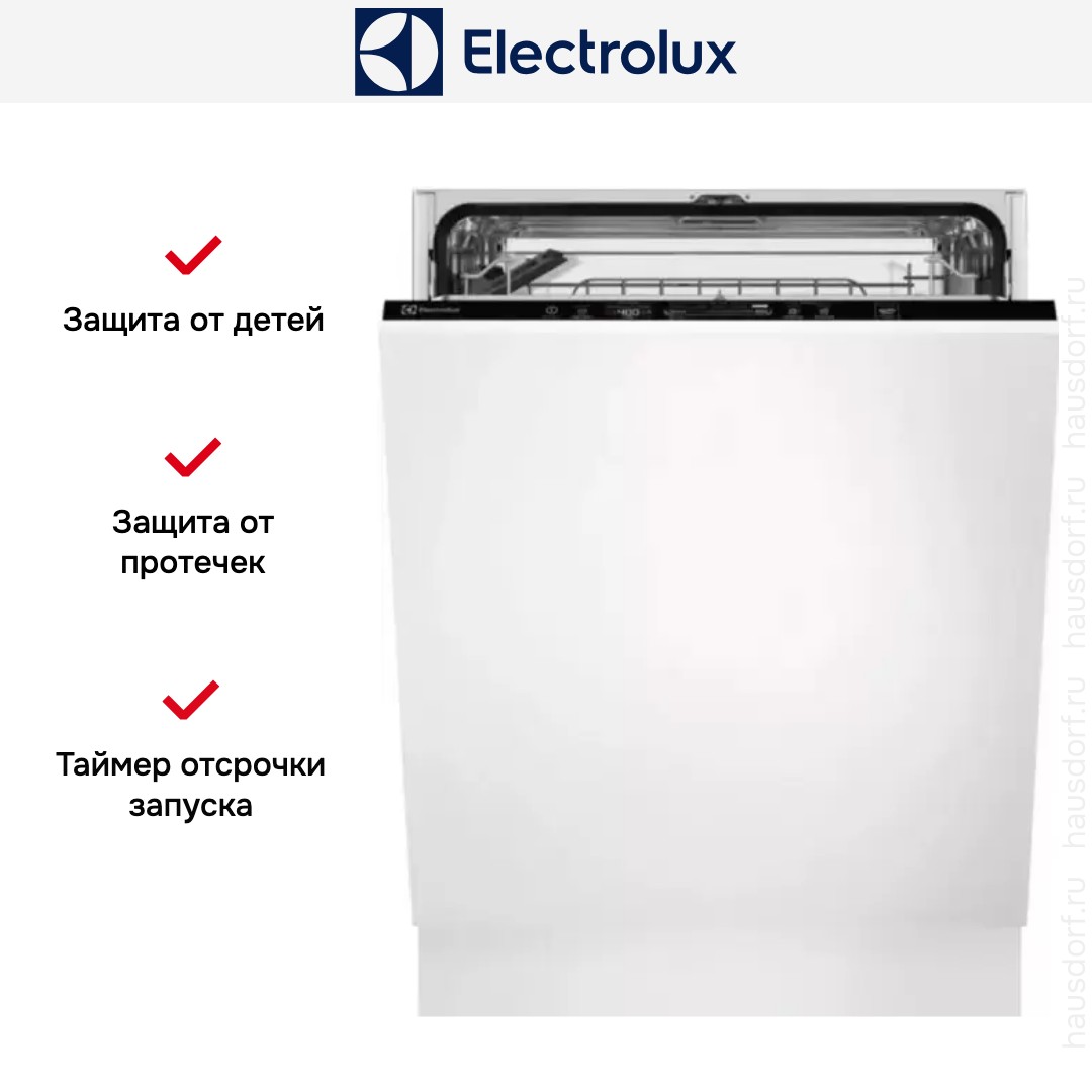 Встраиваемая модель Электролюкс отлично впишется в любой интерьер, главное — правильно выбрать место, чтобы подвести коммуникации. Устанавливается в нишу целиком, полностью закрывается декоративной панелью. Обратите внимание: в комплекте не идет фасад, его необходимо установить самостоятельно. Имеет стандартные размеры, поэтому может не поместиться на очень маленькой кухне. В камеру можно загрузить ограниченное число комплектов: 13 шт. Комплектом считается набор посуды на одного человека, который нужен для полноценного приема пищи: глубокая и плоская тарелки, тарелка для салата, блюдце под чашку, сама чашка, ложка и вилка.