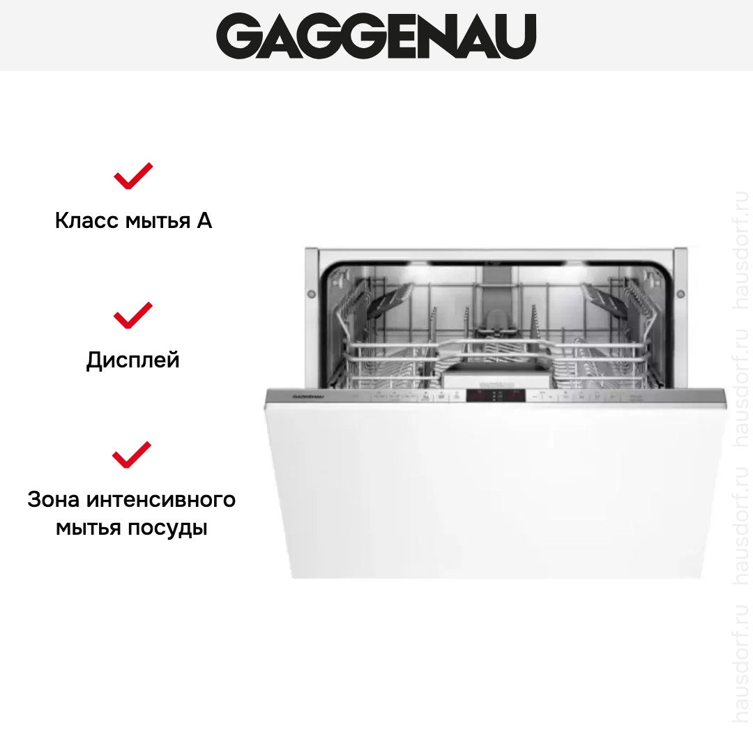 Встраиваемая модель Гаггенау отлично впишется в любой интерьер, главное — правильно выбрать место, чтобы подвести коммуникации. Устанавливается в нишу целиком, полностью закрывается декоративной панелью. Обратите внимание: в комплекте не идет фасад, его необходимо установить самостоятельно. Имеет стандартные размеры, поэтому может не поместиться на очень маленькой кухне. В камеру можно загрузить ограниченное число комплектов: 13 шт. Комплектом считается набор посуды на одного человека, который нужен для полноценного приема пищи: глубокая и плоская тарелки, тарелка для салата, блюдце под чашку, сама чашка, ложка и вилка.