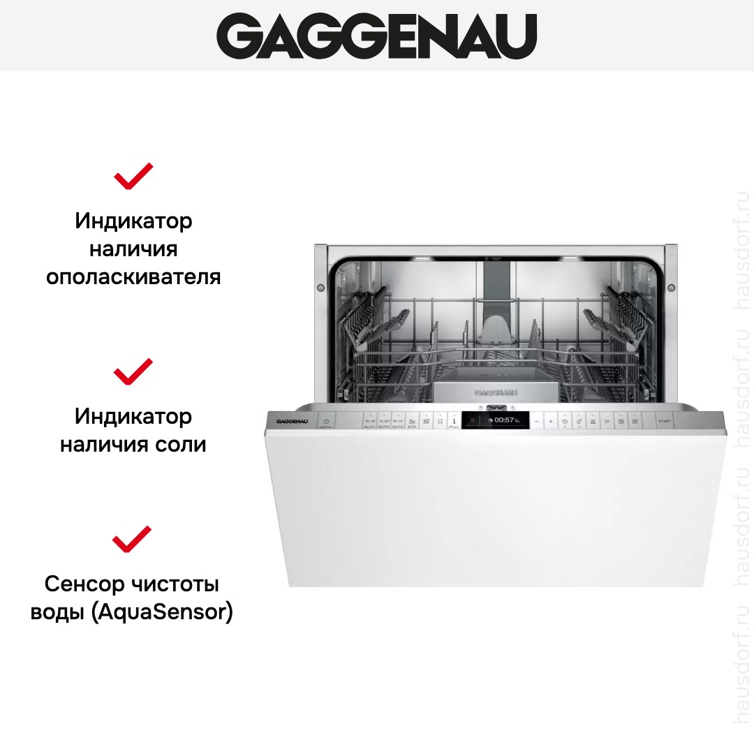 Встраиваемая модель Гаггенау отлично впишется в любой интерьер, главное — правильно выбрать место, чтобы подвести коммуникации. Устанавливается в нишу целиком, полностью закрывается декоративной панелью. Обратите внимание: в комплекте не идет фасад, его необходимо установить самостоятельно. Имеет стандартные размеры, поэтому может не поместиться на очень маленькой кухне. В камеру можно загрузить ограниченное число комплектов: 12 шт. Комплектом считается набор посуды на одного человека, который нужен для полноценного приема пищи: глубокая и плоская тарелки, тарелка для салата, блюдце под чашку, сама чашка, ложка и вилка.