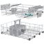 Опуская или поднимая корзину, вы можете положить в нее крупную или обычную посуду. Благодаря этому отмываются не только обеденные тарелки, но и сковороды, кастрюли.
