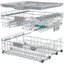 Верхняя корзина может регулироваться по высоте, так что при необходимости в нее можно поместить тарелки большего размера. Нижняя корзина позволяет установить вертикально большие суповые тарелки и блюда большого диаметра — для этого верхнюю корзину можно поднять выше. Тарелки обычно устанавливаются в откидные рамки-держатели, которые легко складываются на дно корзины. Всю посуду в нижней корзине рекомендуется устанавливать без соприкосновения предметов друг с другом, углублением к центру для более интенсивного воздействия струй воды на внутреннюю часть посуды.