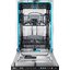 Встраиваемая модель Хайер отлично впишется в любой интерьер, главное — правильно выбрать место, чтобы подвести коммуникации. Устанавливается в нишу целиком, полностью закрывается декоративной панелью. Обратите внимание: в комплекте не идет фасад, его необходимо установить самостоятельно. Имеет уменьшенную ширину — благодаря этому поместится даже на очень маленькой кухне. В камеру можно загрузить ограниченное число комплектов: 11 шт. Комплектом считается набор посуды на одного человека, который нужен для полноценного приема пищи: глубокая и плоская тарелки, тарелка для салата, блюдце под чашку, сама чашка, ложка и вилка.