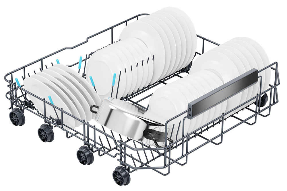 Полноразмерные модели выбирают в больших семьях, а также те, кто много готовит или часто принимает гостей. Их вместимость может составить до 15 комплектов посуды, а габаритные размеры соответствуют размерам стандартной кухонной мебели шириной и глубиной 60 см и высотой 82-85 см. Они выпускаются как во встраиваемом, так и в отдельностоящем варианте: во втором случае для установки понадобится достаточно много места. Как правило, полноразмерные приборы отличаются большим набором стандартных и специальных программ мойки, а также дополнительных опций: в частности, они оснащаются третьей корзиной для мытья столовых приборов.