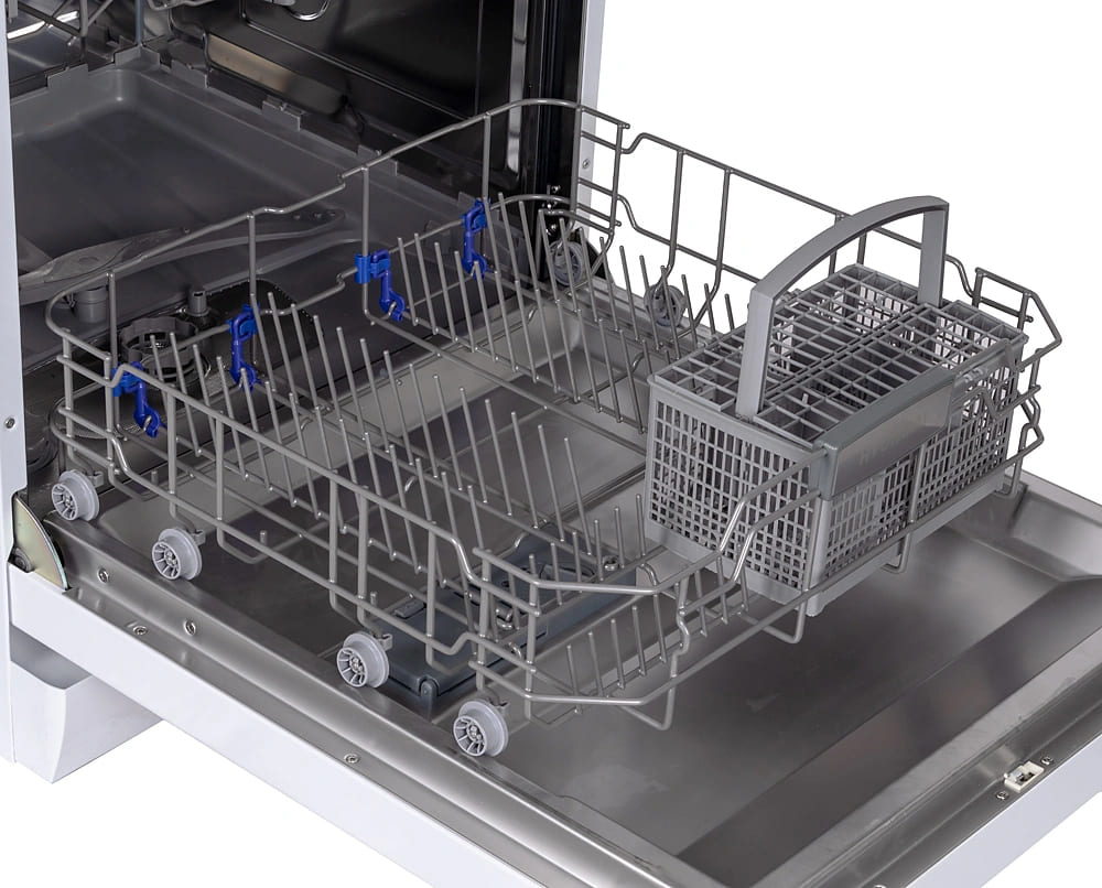 Полноразмерные модели выбирают в больших семьях, а также те, кто много готовит или часто принимает гостей. Их вместимость может составить до 15 комплектов посуды, а габаритные размеры соответствуют размерам стандартной кухонной мебели шириной и глубиной 60 см и высотой 82-85 см. Они выпускаются как во встраиваемом, так и в отдельностоящем варианте: во втором случае для установки понадобится достаточно много места. Как правило, полноразмерные приборы отличаются большим набором стандартных и специальных программ мойки, а также дополнительных опций: в частности, они оснащаются третьей корзиной для мытья столовых приборов.