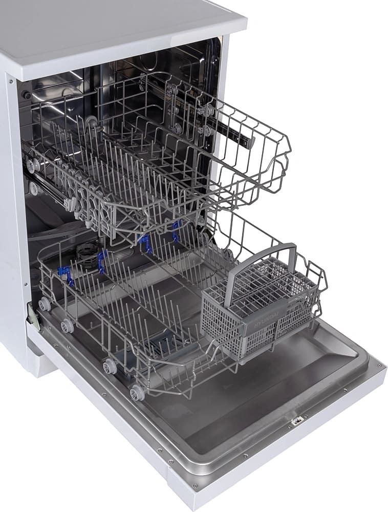 Отдельностоящая модель Хендай отлично впишется в кухонный интерьер, главное — правильно выбрать место, чтобы подвести коммуникации. Имеет стандартные размеры, поэтому может не поместиться на очень маленькой кухне. В камеру можно загрузить ограниченное число комплектов: 12 шт. Комплектом считается набор посуды на одного человека, который нужен для полноценного приема пищи: глубокая и плоская тарелки, тарелка для салата, блюдце под чашку, сама чашка, ложка и вилка.