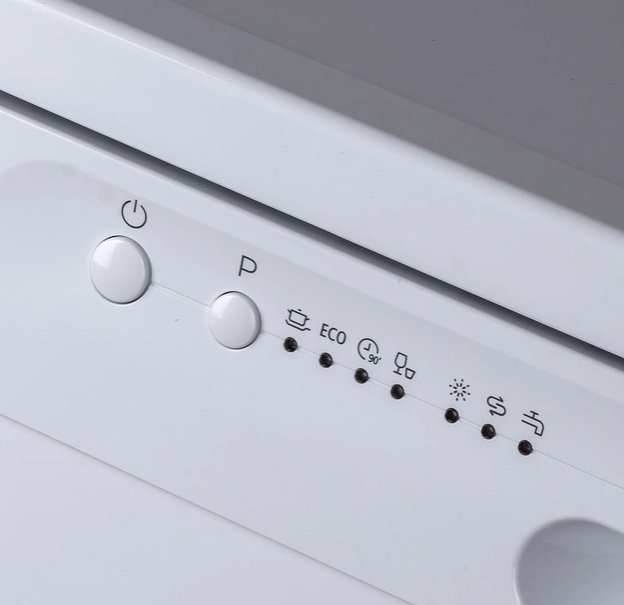 Цвет панели управления посудомоечной машины во многом зависит от типа устройства и расположения управляющих элементов. В большинстве современных посудомоек используется кнопочное либо сенсорное управление. В отдельностоящих и настольных моделях панель управления может быть открытой и располагаться на фронтальной части прибора, что облегчает установку параметров работы и контроль за выполнением программы. Во встраиваемых моделях с возможностью навески декоративного мебельного фасада панель управления чаще всего размещается на верхней кромке дверцы.