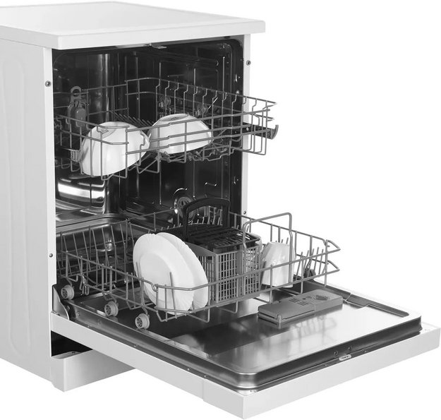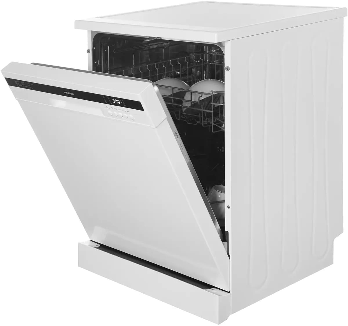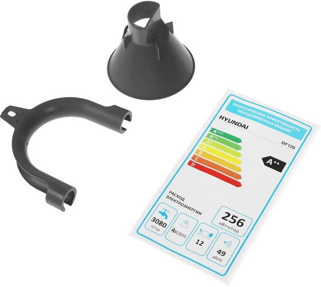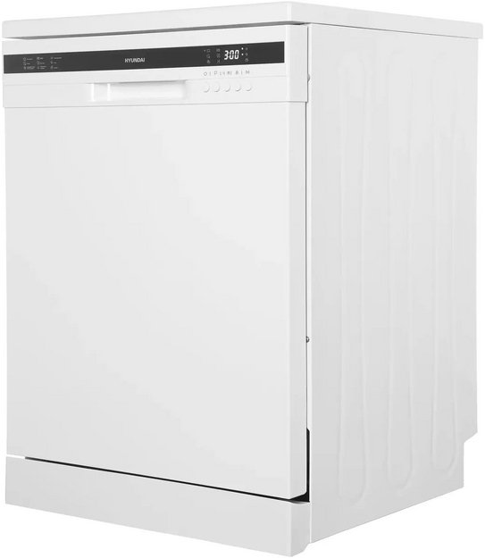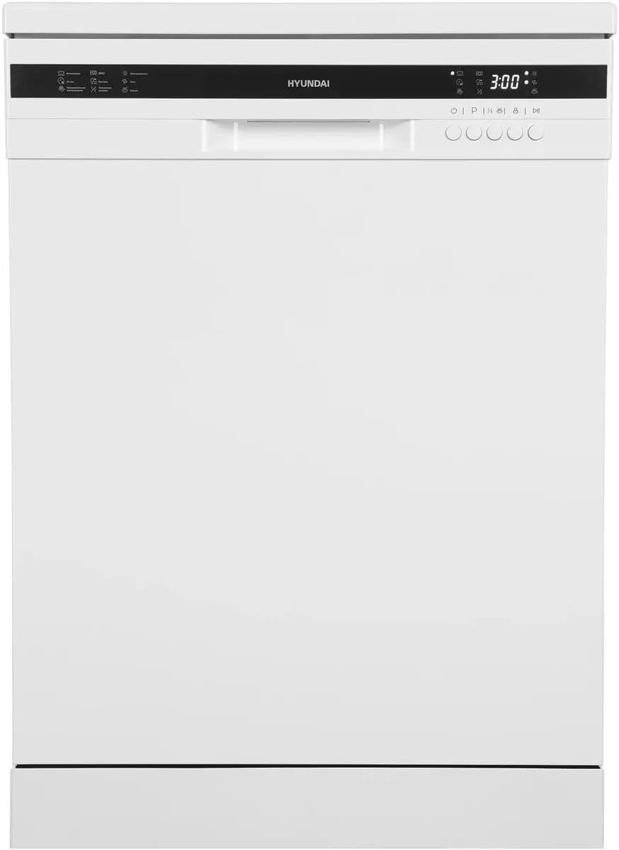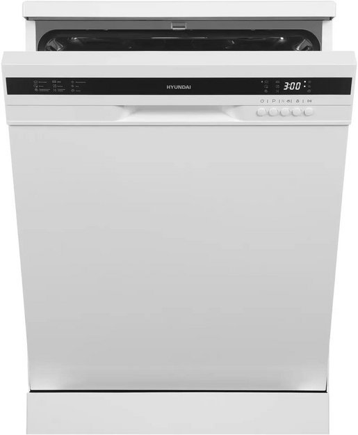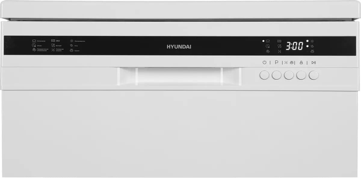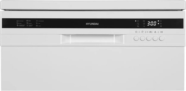 Отдельностоящая модель Хендай отлично впишется в кухонный интерьер, главное — правильно выбрать место, чтобы подвести коммуникации. Имеет стандартные размеры, поэтому может не поместиться на очень маленькой кухне. В камеру можно загрузить ограниченное число комплектов: 12 шт. Комплектом считается набор посуды на одного человека, который нужен для полноценного приема пищи: глубокая и плоская тарелки, тарелка для салата, блюдце под чашку, сама чашка, ложка и вилка.