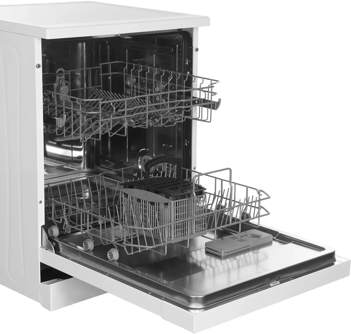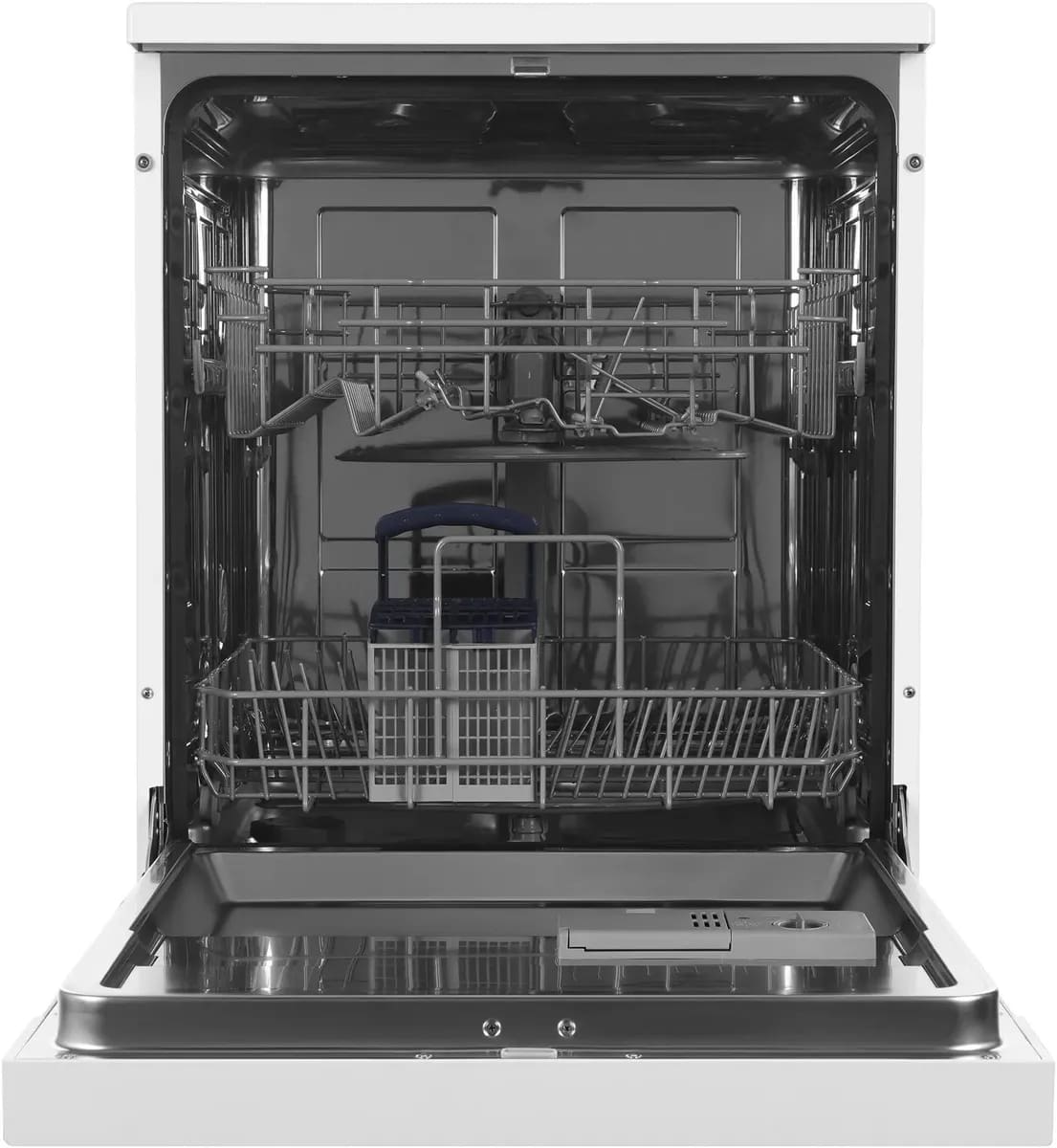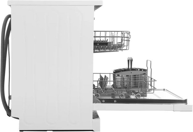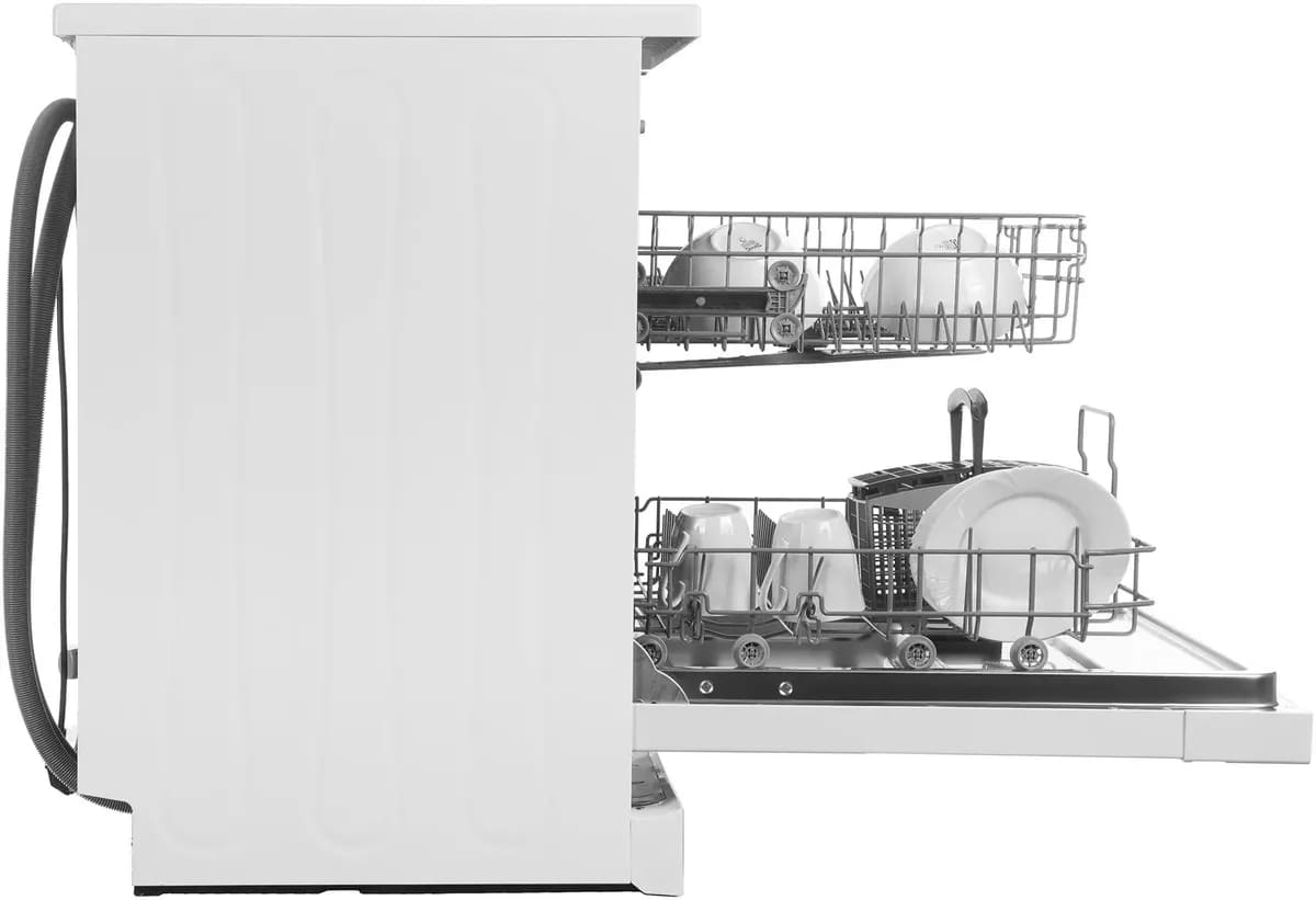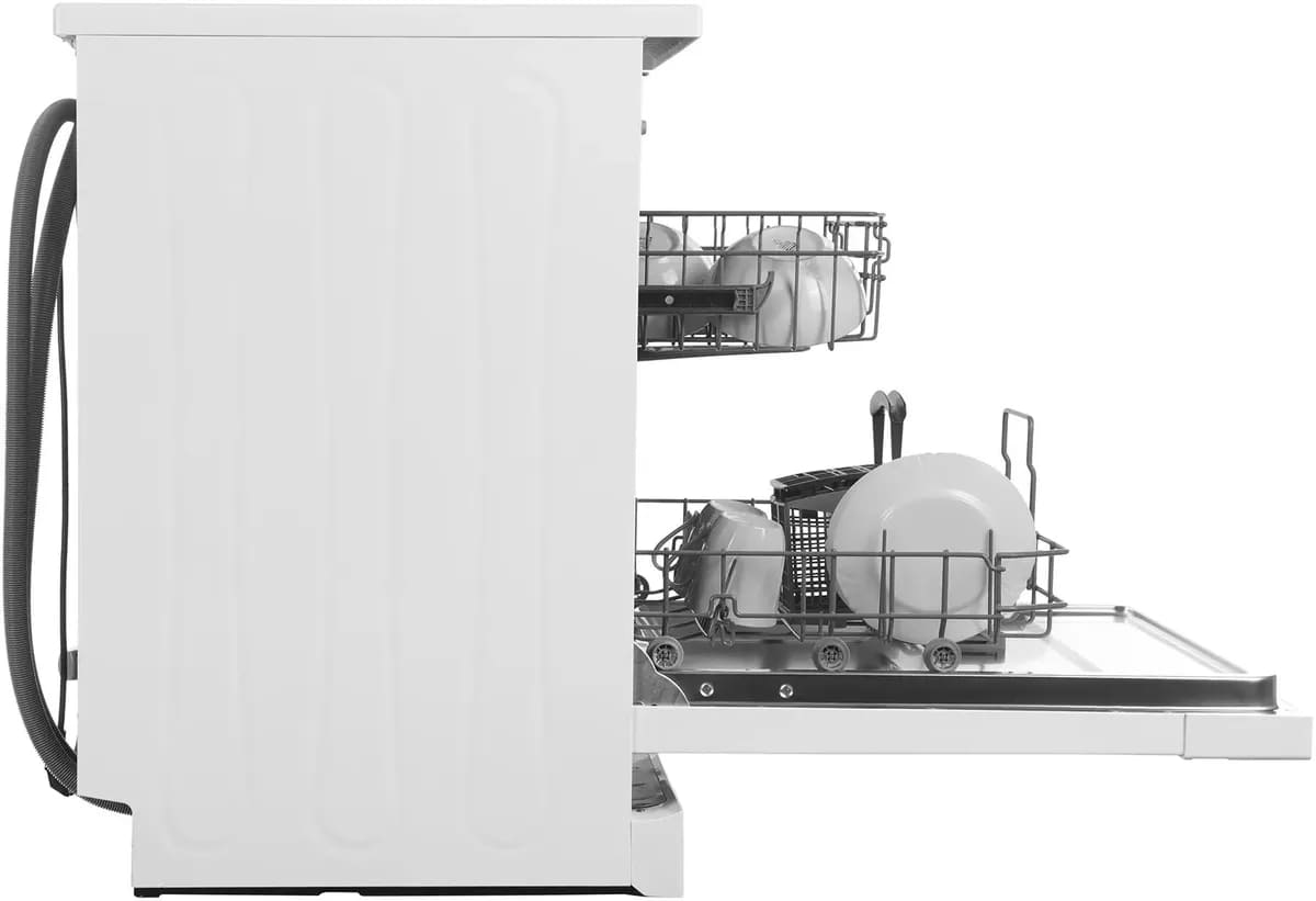 Отдельностоящая модель Хендай отлично впишется в кухонный интерьер, главное — правильно выбрать место, чтобы подвести коммуникации. Имеет стандартные размеры, поэтому может не поместиться на очень маленькой кухне. В камеру можно загрузить ограниченное число комплектов: 12 шт. Комплектом считается набор посуды на одного человека, который нужен для полноценного приема пищи: глубокая и плоская тарелки, тарелка для салата, блюдце под чашку, сама чашка, ложка и вилка.