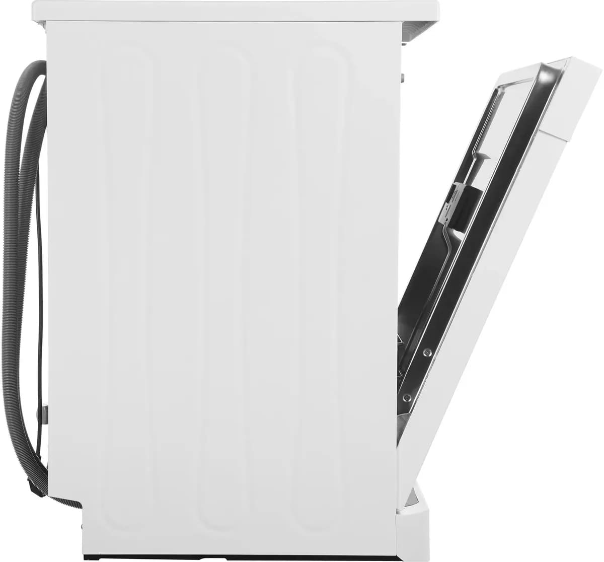 Большая часть полноразмерных и узких посудомоек встраиваемого и отдельностоящего вида имеет высоту около 82-85 см: такие модели легко размещаются под столешницей. Встраиваемые модели несколько ниже, так как у них отсутствует верхняя крышка.