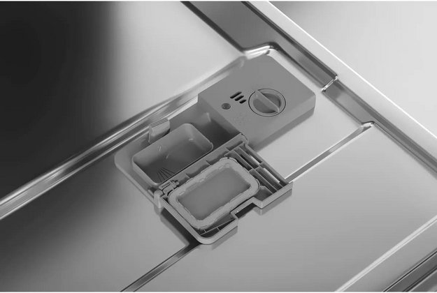 Запас нужно постоянно пополнять, добавляя ее в специальный отсек — расход при этом определяется степенью жесткости. Если индикатор наличия соли не светится, значит, ее достаточно для нормальной работы. Если индикатор начинает мигать, это означает, что средство уже заканчивается. А если индикатор горит, не выключаясь, заполнить соответствующий отсек требуется как можно скорее.