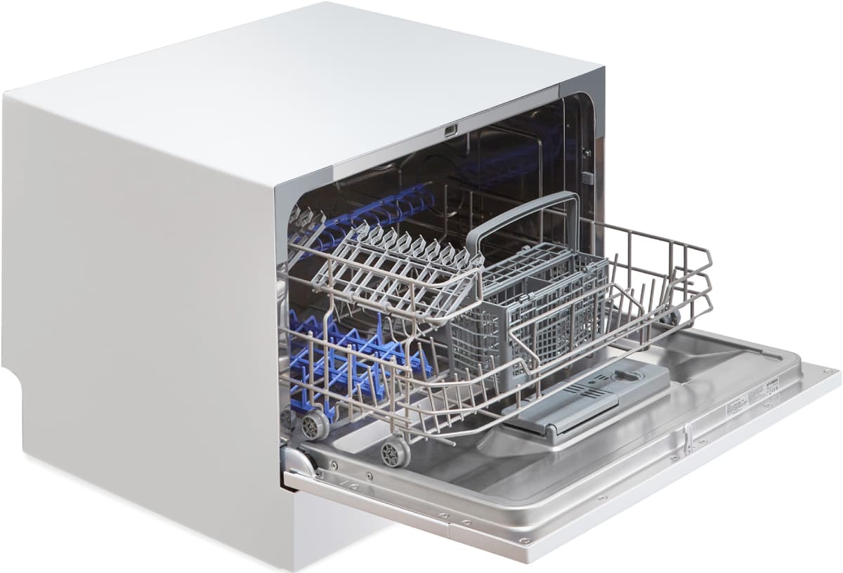 Узкие посудомоечные машины отличает ширина от 44,5 до 45 см при стандартных высоте и глубине и, соответственно, меньшая вместимость, не превышающая 10 комплектов посуды. Обычно это приборы встраиваемого типа, которые легко устанавливаются в узкую мебельную тумбу. Компактные устройства значительно меньше полноразмерных по высоте, а по своей ширине практически от них не отличаются — она составляет от 55 до 60 см. Вместимость подобных небольших машин встраиваемого и отдельно стоящего типа — 4-6 комплектов посуды.