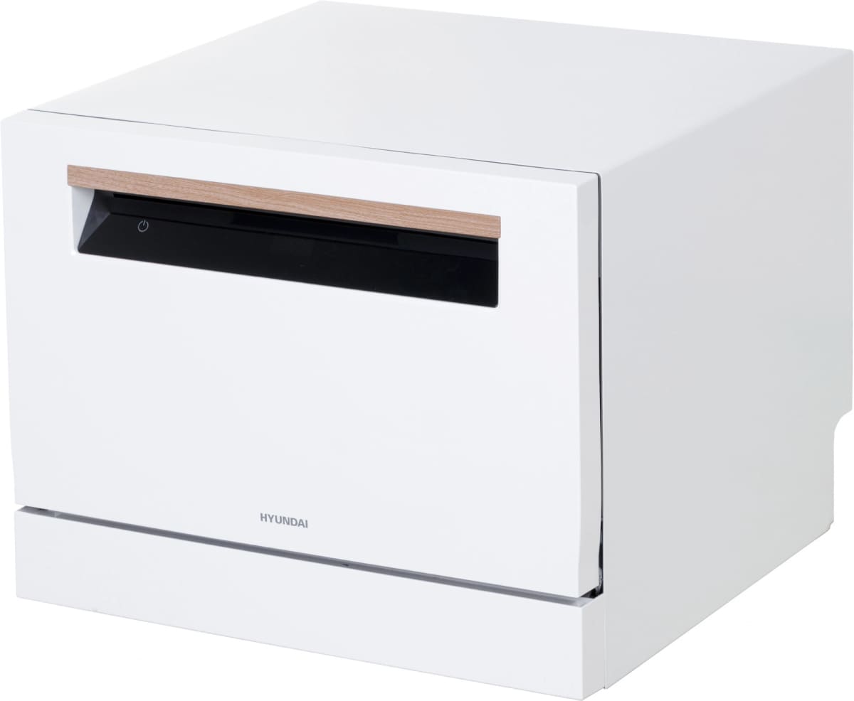 Отдельностоящая модель Хендай отлично впишется в кухонный интерьер, главное — правильно выбрать место, чтобы подвести коммуникации. Компактные размеры позволяют разместить ее даже на очень маленькой кухне. В камеру можно загрузить ограниченное число комплектов: 6 шт. Комплектом считается набор посуды на одного человека, который нужен для полноценного приема пищи: глубокая и плоская тарелки, тарелка для салата, блюдце под чашку, сама чашка, ложка и вилка.