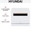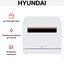 Посудомоечная машина Hyundai DT304 — компактный отдельно стоящий агрегат в белом корпусе с черной открытой сенсорной панелью. Его габариты 44×50×55 см делают устройство идеальным выбором для малогабаритных кухонь и кухонных ниш. Лаконичный внешний вид сочетается с удобной кнопочной панелью включения и выбора программ. Цифровой дисплей показывает оставшееся время в минутах, а звуковой сигнал оповещает об окончании цикла.