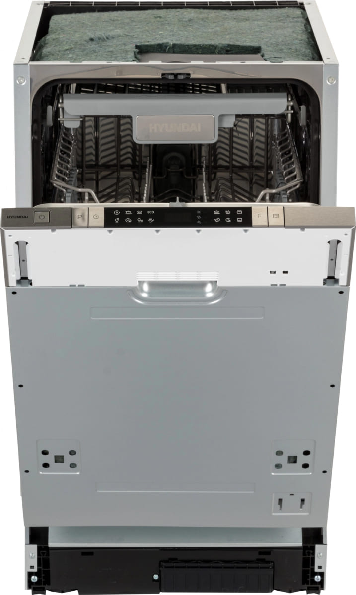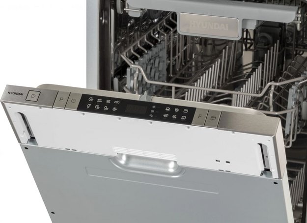 Встраиваемая модель Хендай отлично впишется в любой интерьер, главное — правильно выбрать место, чтобы подвести коммуникации. Устанавливается в нишу целиком, полностью закрывается декоративной панелью. Обратите внимание: в комплекте не идет фасад, его необходимо установить самостоятельно. Имеет уменьшенную ширину — благодаря этому поместится даже на очень маленькой кухне. В камеру можно загрузить ограниченное число комплектов: 10 шт. Комплектом считается набор посуды на одного человека, который нужен для полноценного приема пищи: глубокая и плоская тарелки, тарелка для салата, блюдце под чашку, сама чашка, ложка и вилка.