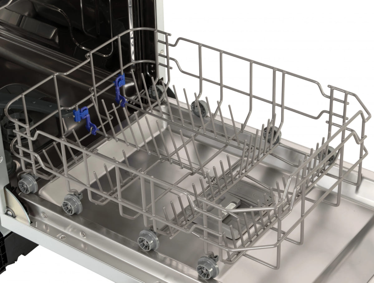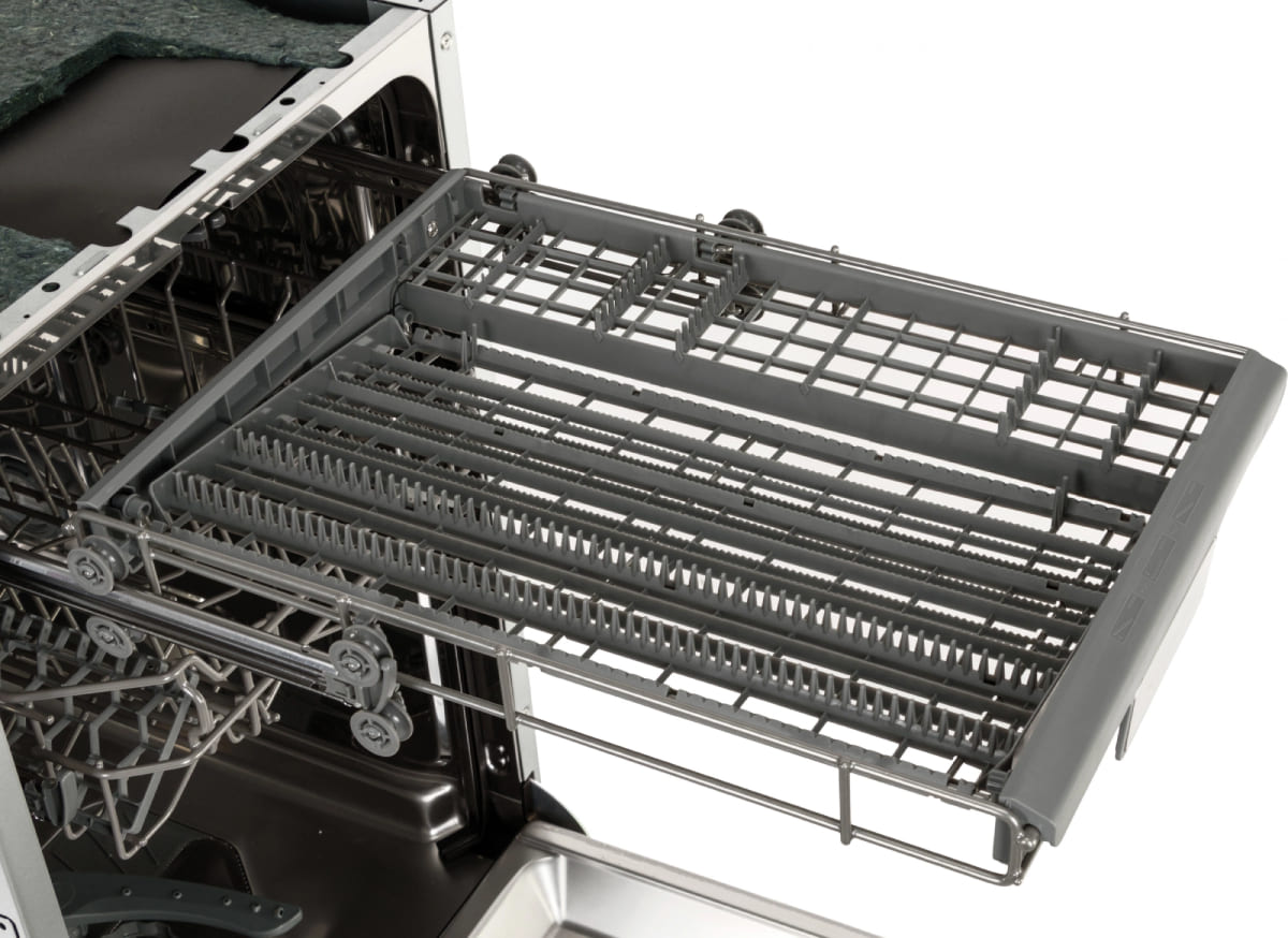 Как правило, полки для столовых приборов находятся в верхней корзине — таким образом, чтобы под ними можно было расположить, например, небольшие чашки. Часто полки оснащаются специальными разделителями, которые позволяют зафиксировать любой предмет, чтобы он не мог случайно сдвинуться с перекрыть доступ к соседним. В ряде моделей для столовых приборов предусматриваются большие полки, которые размещаются на третьем уровне. Такая конструкция считается оптимальной, так как освобождается место в корзинах для более крупных предметов. Такие полки достигают в высоту 5 см, так что на них можно размещать не только обычные ножи, ложки или вилки, но и более объемные половники, шумовки, лопатки, терки и другую подобную утварь.