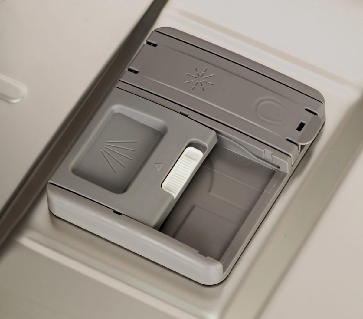 Для высококачественного мытья требуются три компонента. Порошок служит для удаления загрязнений, оставшихся на посуде. Соль нейтрализует примеси, содержащиеся в водопроводной воде, и позволяет избавиться от накипи и известковых отложений на посуде и внутренней поверхности камеры. И, наконец, ополаскиватель позволяет уменьшить поверхностное натяжение воды при помощи специальных составляющих — тензидов, которые облегчают скатывание капель воды. Он способствует удалению остатков порошка и соли, придает посуде ослепительный блеск, и в конечном счете обеспечивает лучшее и быстрое высыхание, а также отсутствие разводов и потеков на ее поверхности.
